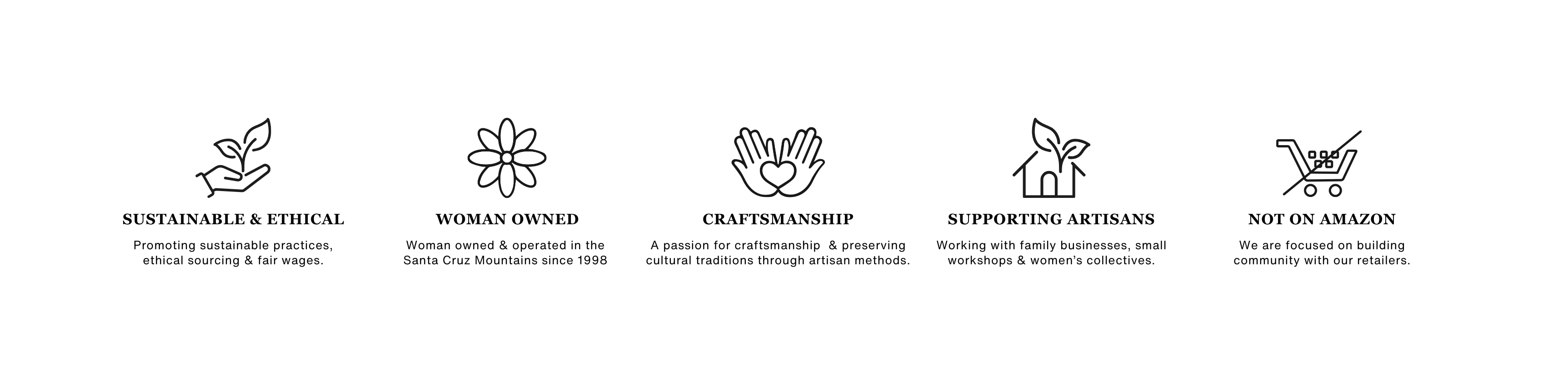 A fair trade, women-owned business based in the Santa Cruz Mountains, CA.