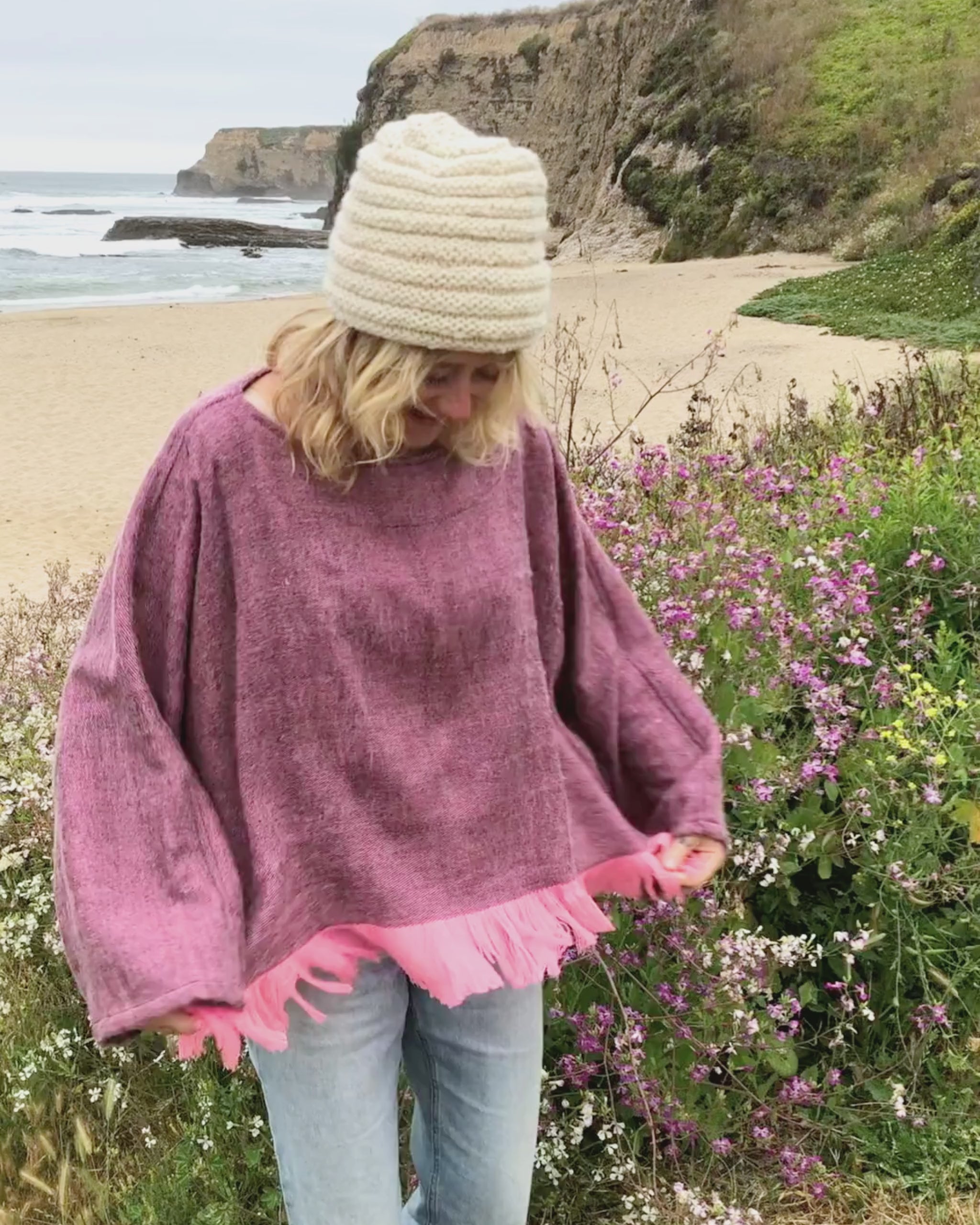 This comfortable box top features 3/4 length sleeve, and colorful fringe.